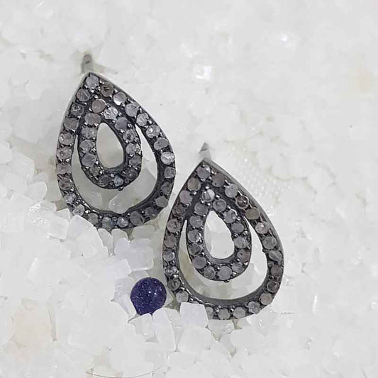 Fancy Designer Pave Diamond 925 Sterling Silver Stud, Silver Jewelry