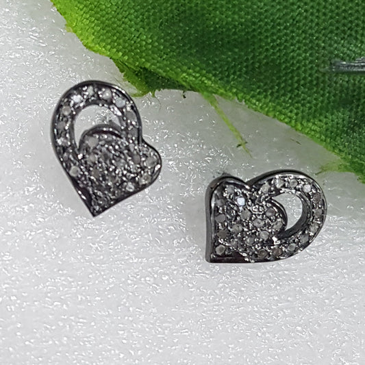 Fancy Designer Pave Diamond Heart Stud, Silver Jewelry, Gift For Favorite One
