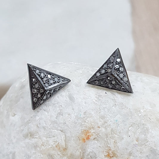 Delta Designed Pave Diamond 925 Sterling Silver Stud, Silver Jewelry