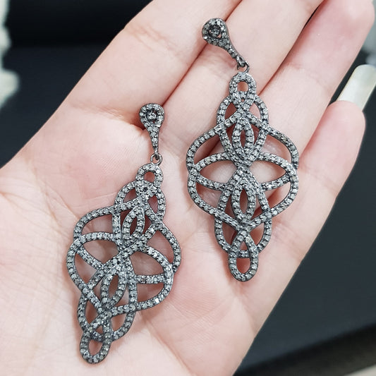 Fancy Earrings for the Bold and Beautiful, Handmade 925 Sterling Silver Pave Diamond Fancy Earrings, Silver Jewelry