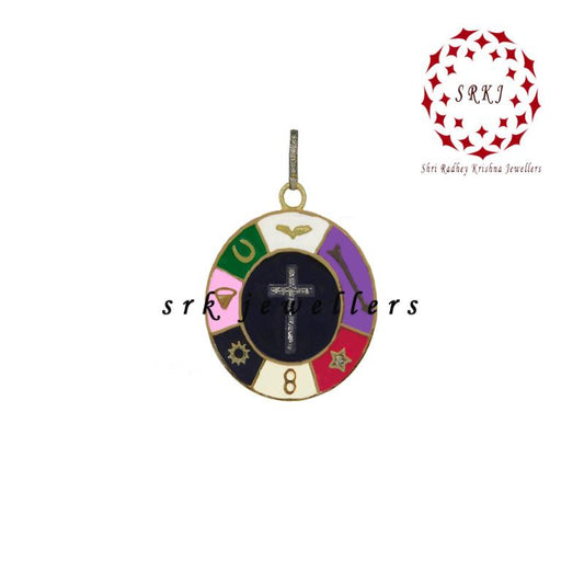 Round Multi Charm Disk Pave Diamond With Enamel Pendant, Attractive Round Design Pendant, Gift For Someone