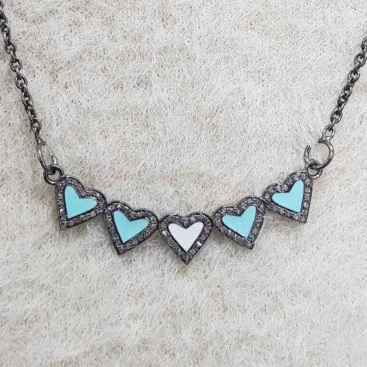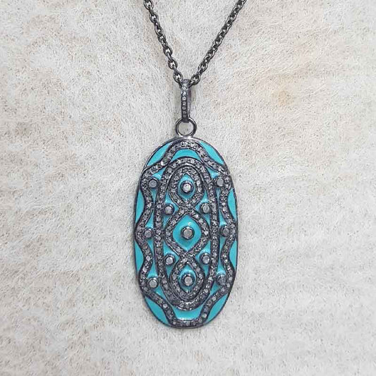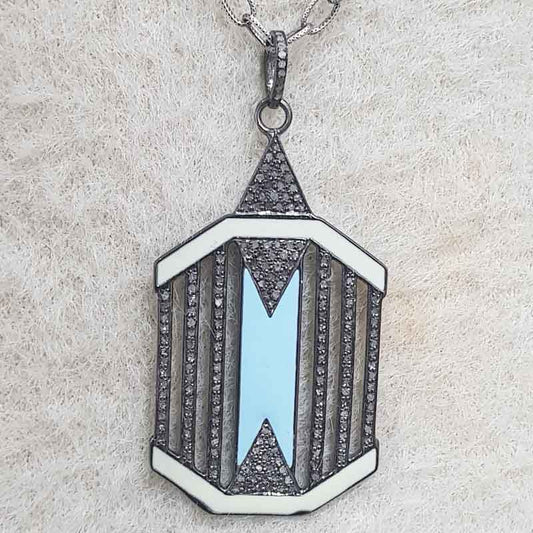 Turquoise Enamal With Graceful Pave Diamond Layers Silver Tag pendant, Enamel Fancy Necklace, Gift For Her, Him