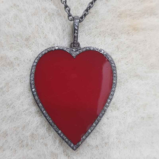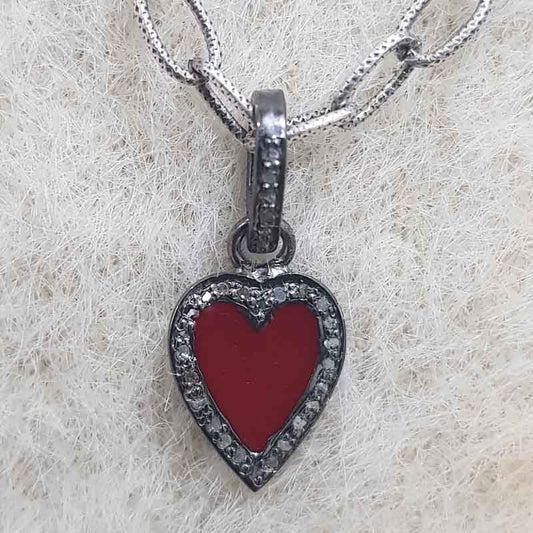 Small Beautiful Pave Diamond Red Enamel Heart Pendant, Minimalist Heart Pendant, Gift For Girlfriend