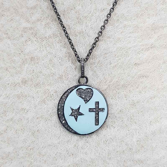 Fancy Designer Pave Diamond 925 Sterling Silver Enamel Pendant, Precious Fancy necklace, Personalized Gift For Love, Silver Jewelry