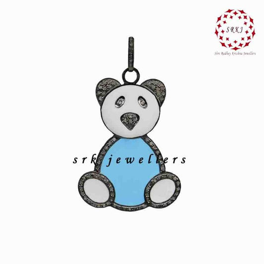 Gorgeous Enamel Teddy Bear Pendant, Children's Gift, Birthday Gift, Cutest Teddy Gift, Silver Jewelry