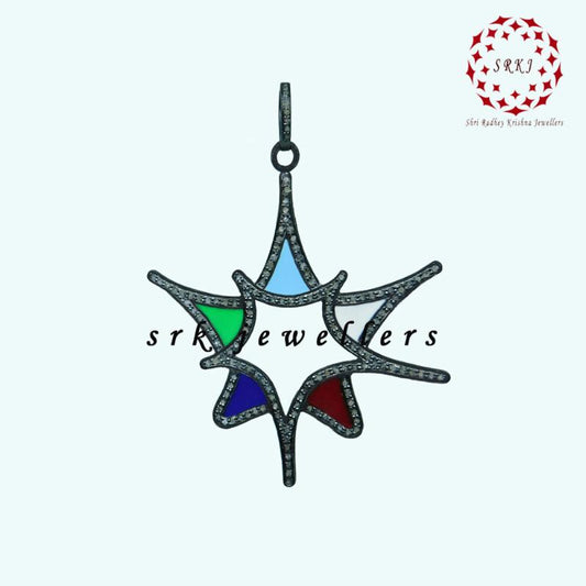 Multi Color Enamel Fancy designer pave Diamond Sterling Silver pendant, Stylish Fancy Necklace, Silver Jewelry