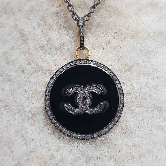 CC Pendent With Shiny Pave Diamond layers And Enamel, Amazing Bright Necklace, Gift For Lover
