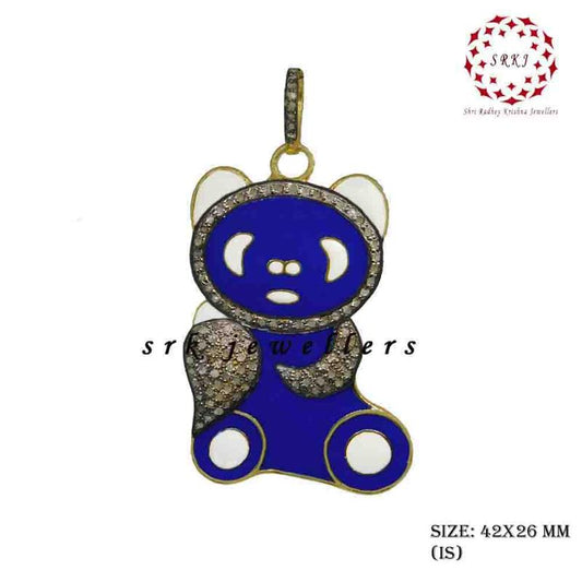 Lovely Teddy Bear Designed Pave Diamond With Enamel Pendant, Teddy Bear Necklace, Gift For Someone