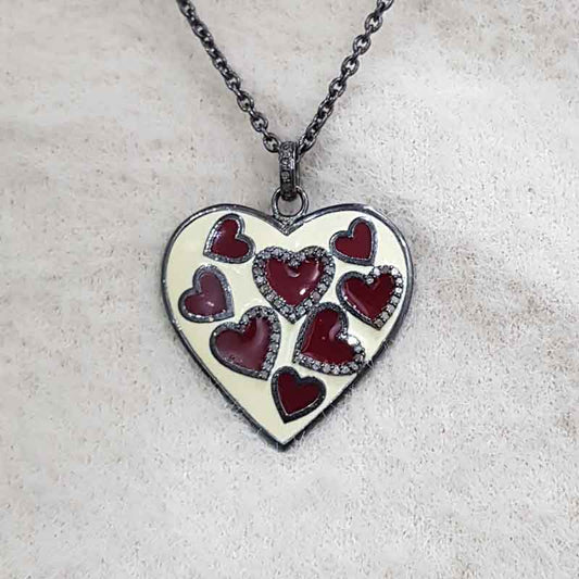 Glorious Multi Color Enamel Heart Pendant With Pave Layers, Valentine Giftt, Silver Jewelry