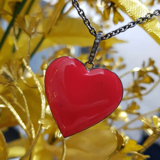 Red Enamel 925 Sterling Silver Small Heart Pendant, Stunning Red Heart Necklace, Gift For Love, Valentine Gift
