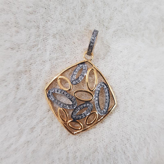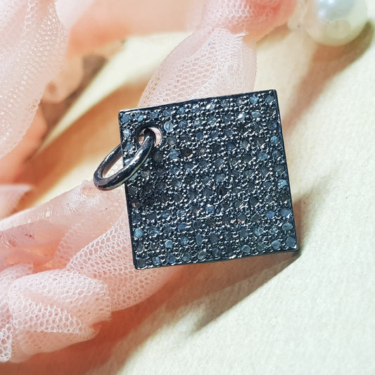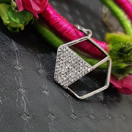 Square Fancy Pendant, Attractive Pave Diamond Handmade Fancy Designer Pendant, Silver Jewelry