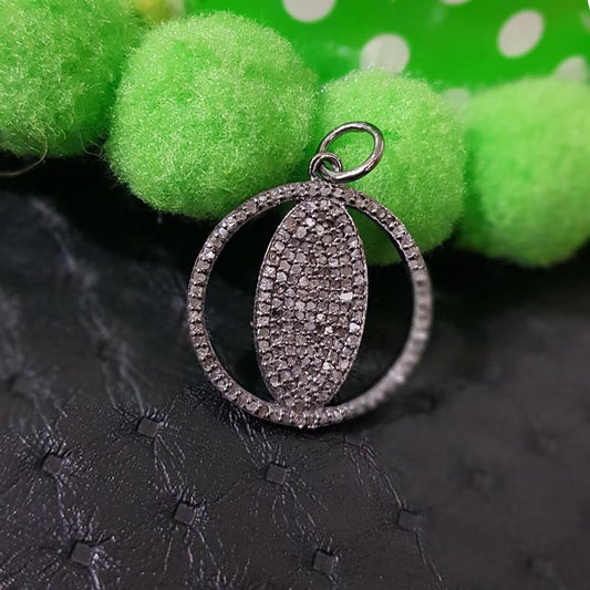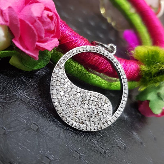 Unique Designer Handmade Round Style Pendant With Pave Diamond, Silver Jewelry