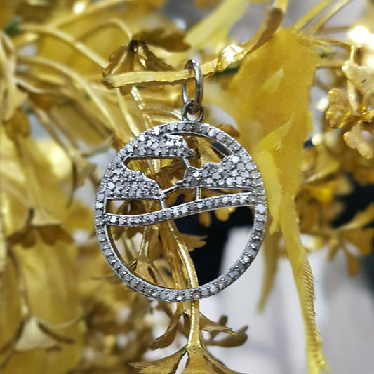 Attractive Pave Diamond Handmade Fancy Designer Round pendant, Silver Jewelry
