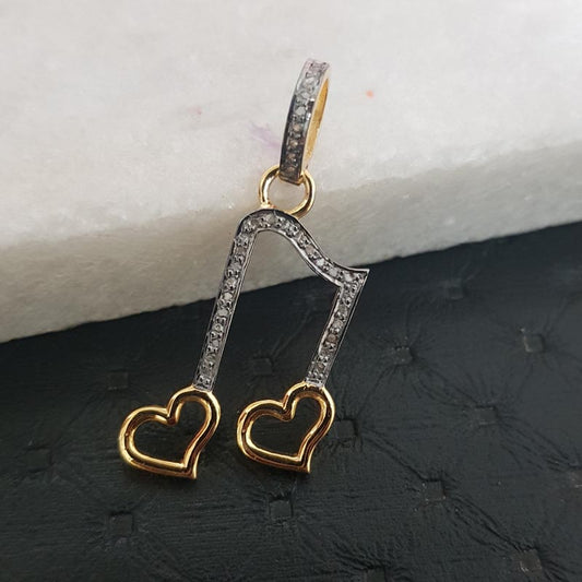 A Musical Pendant Design, Two Tone Fancy 925 Sterling Silver Pave Diamond Heart Pendant, Gift For Music Lover, Birthday Gift