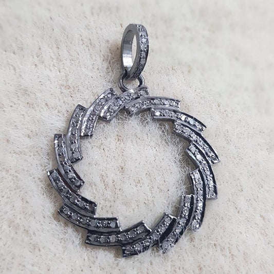 A Designer's Pendant Masterpiece, 925 Sterling Silver Handmade beautiful Round Pendant With Pave Diamond