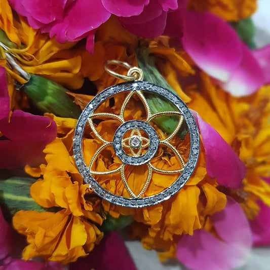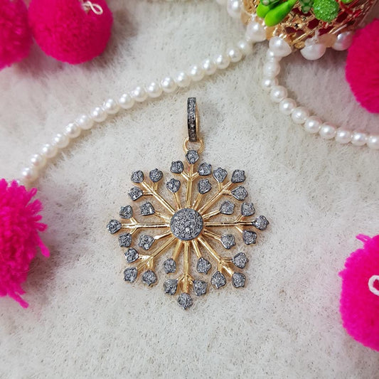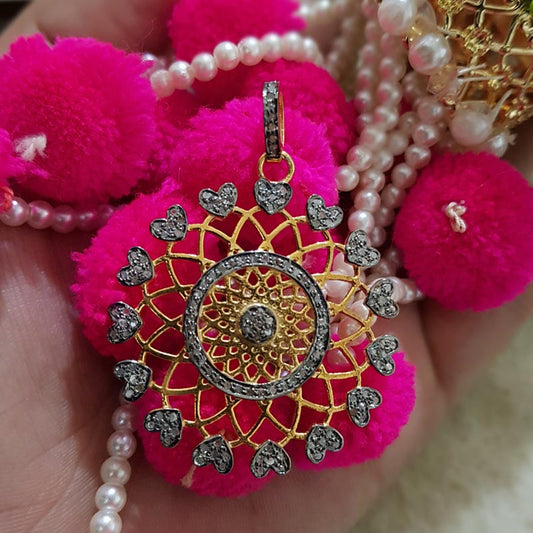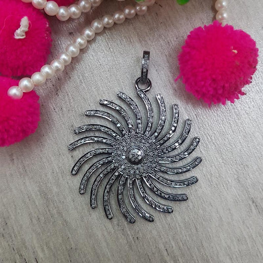 Glamorous Designer Handmade Beautiful Round Shape Flower Pendant With Pave Diamond, Silver Jewelry