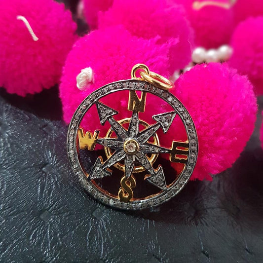 Directional Round Pendant, Fancy Designer Handmade Round Pendent With Pave Diamond, Silver Jewelry