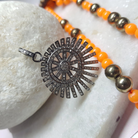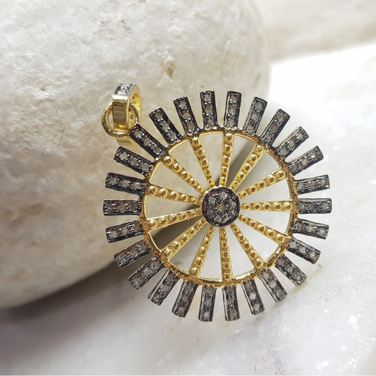 Dazzling Delight Pendant, Fully Pave Diamond Handmade Designer Sunburst Pendant, Silver Jewelry