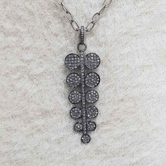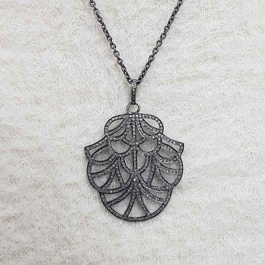 925 Sterling Silver Fancy Designer Pave Diamond Pendant, Silver Jewelry
