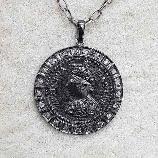 Natural Sterling Silver Pave Diamond Coin Pendant, Amazing Round Coin Necklace, Gift For Someone