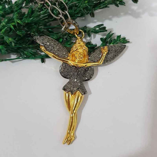 Gorgeous Dancing Angel Pave Diamond Pendant, Gift For Special One, Silver Jewelry