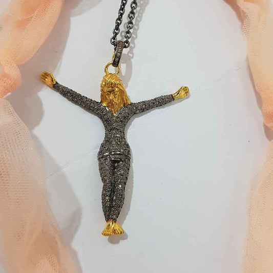 Jesus Christ Beautiful Designer Pave Diamond 925 Sterling Silver Yellow Pendant, Christmas Day Gift, Christens God Necklace