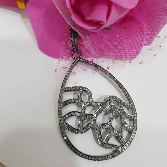 Antique Finish Designer Tear Drop Pave Diamond Pendant, Wedding Gift, Bridal Gift