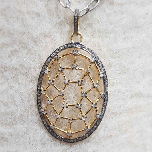 Oval Shaped Fancy Designer Pave Diamond Pendant, Fancy Stylish Shape Necklace, Silver Jewelry, Gift For Lover
