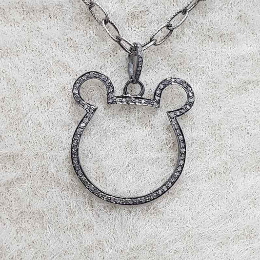 Mickey Mouse Handmade Designer pave Diamond Pendant, Cutest Gift For Children's, Silver Jewelry