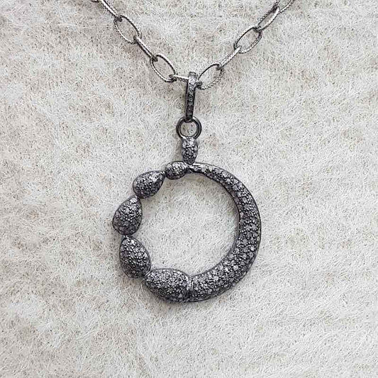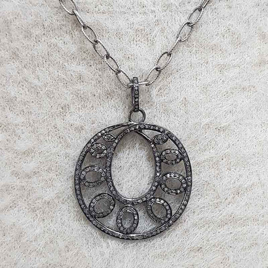 5 Round Fancy Designer Pave Diamond Pendant, Beautiful joint Round Pendant, Silver Jewelry