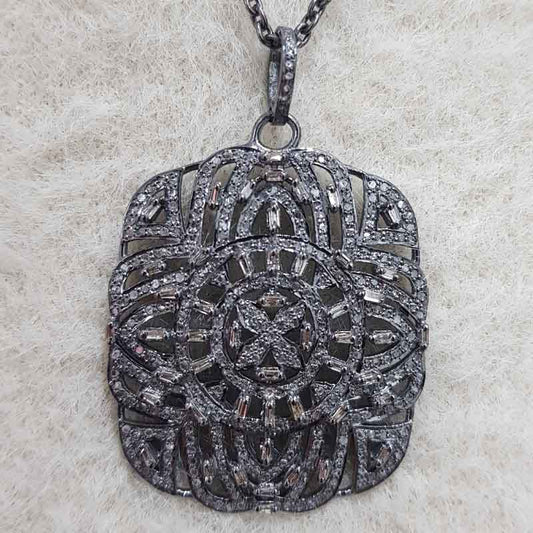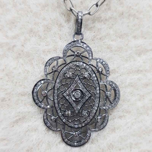 Natural Pave Diamond Gorgeous Fancy Designer Pendant, Silver Jewelry
