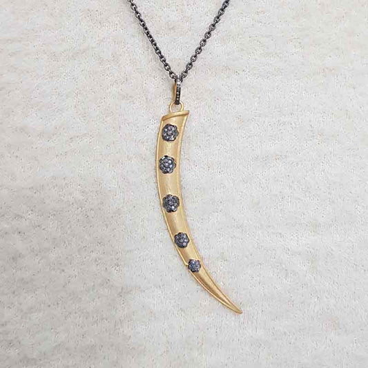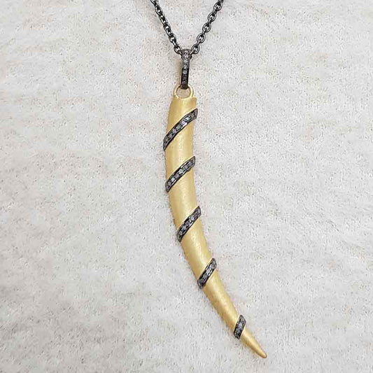 Matte Finish Designer Horn Pendant With Pave Hearts, Horn Style Necklace, Natural Pave Diamond