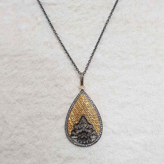 Fancy Designer Long hanging pendant With pave diamond layers, Black fancy Necklace