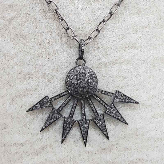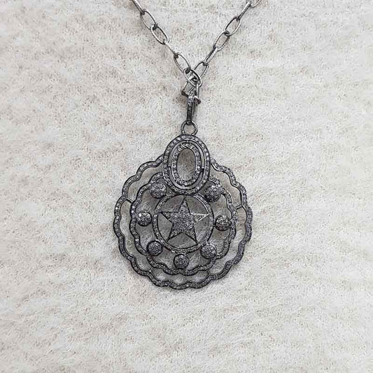 Lovely Fancy Designer Pave Diamond Silver Pendant, Fancy Black Necklace, Mothers Day Gift