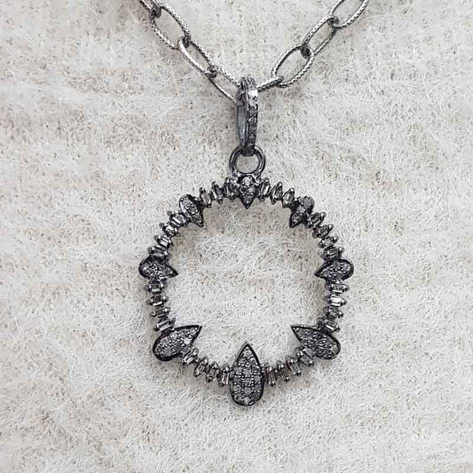Round Designer Natural Pave Diamond Fancy Pendant, Silver Jewelry