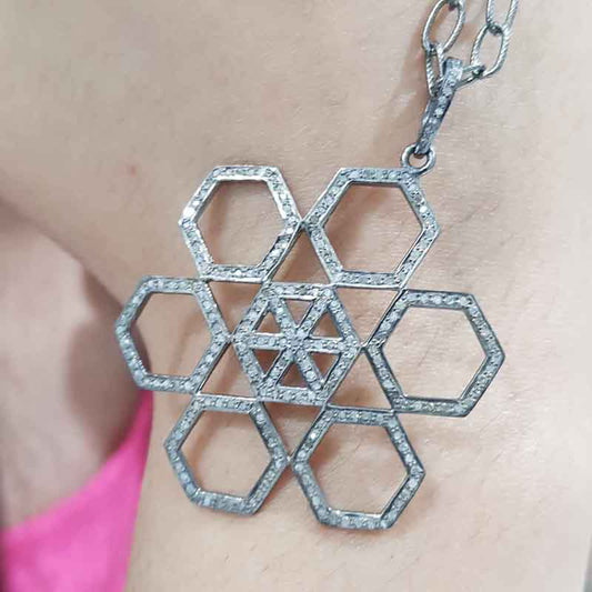 Fancy Designer 925 Sterling Silver Pave Diamond Pendant, Fancy necklace, Wedding Gift