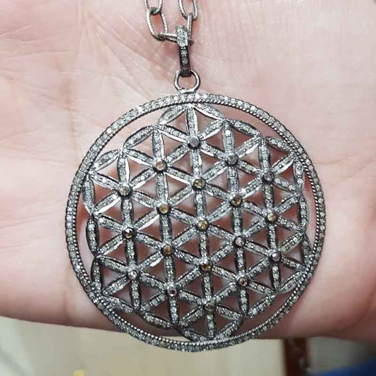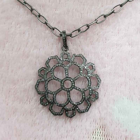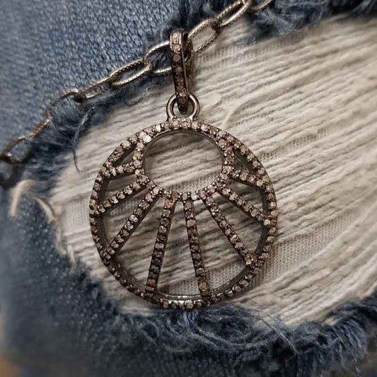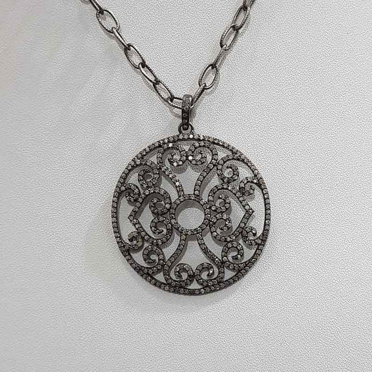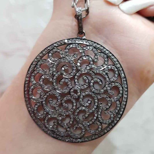 Round Fancy Designer Pave Diamond Pendant, 925 Sterling silver Pendant, Silver jewelry