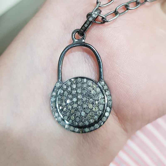 Beautifully Designed Lock Style Pendant, Small Lock Pendant, Pave Diamond Jewelry