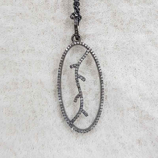 Fancy Designer Pave Diamond 925 Sterling Silver Pendant, Fancy Black Pendant, Gift For Her