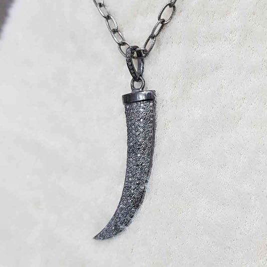 Horn Style Pendent With Pave Diamond, 925 Sterling Silver Jewelry, Wedding Gift