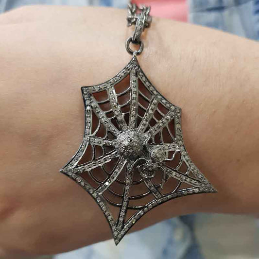 Pave Diamond Handmade Spider Web Pendant, unique Designer Pendant, Gift For Her