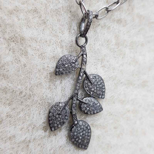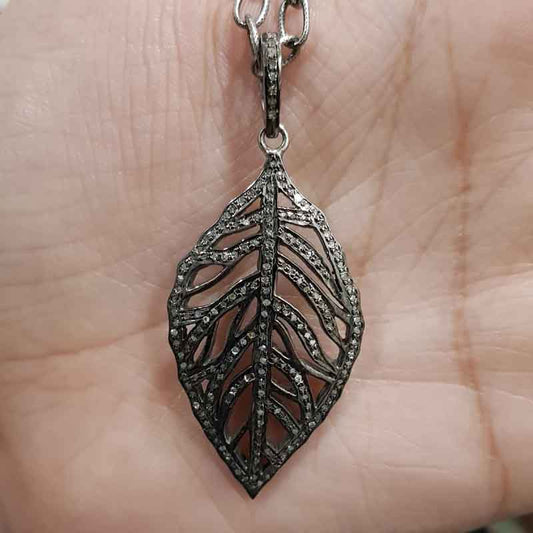 Natural Pave Diamond Gorgeous Leaf Pendant, 925 Sterling Silver Pendant, Wedding Gift