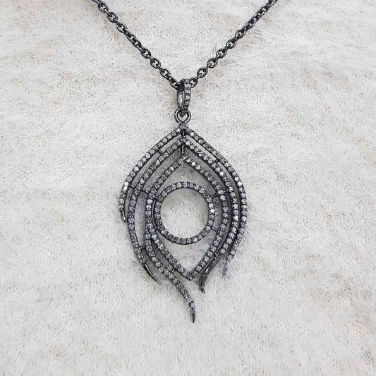 Handmade Designer Peacock Feather Pendant With Pave Diamond Layers, Attractive Feather Pendant, wedding Gift