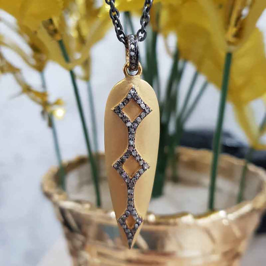 Arrow Head Matte Finish Pendent With Pave Diamond And 925 Sterling Silver, Silver Jewelry