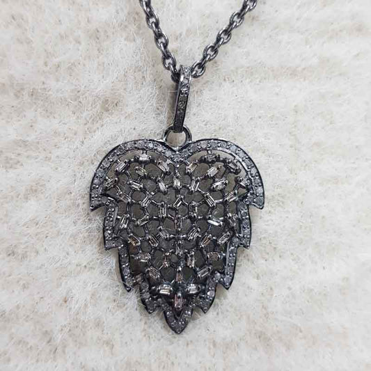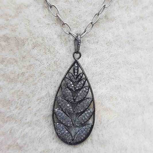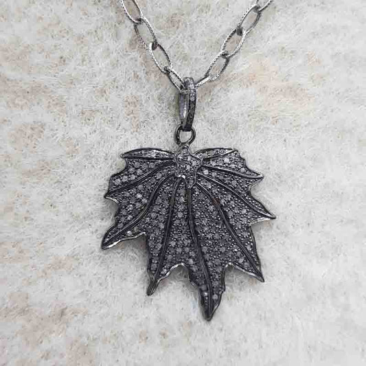 Black Beautiful Leaf Pendant with Pave Layers, Stylish Leaf Pendant, Silver Jewelry, Designer Leaf Pendant