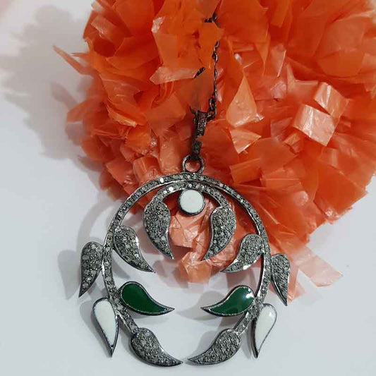 Beautifully Leaf Designer pave diamond Pendant, enamel Leaf Shape, Birthday Gift