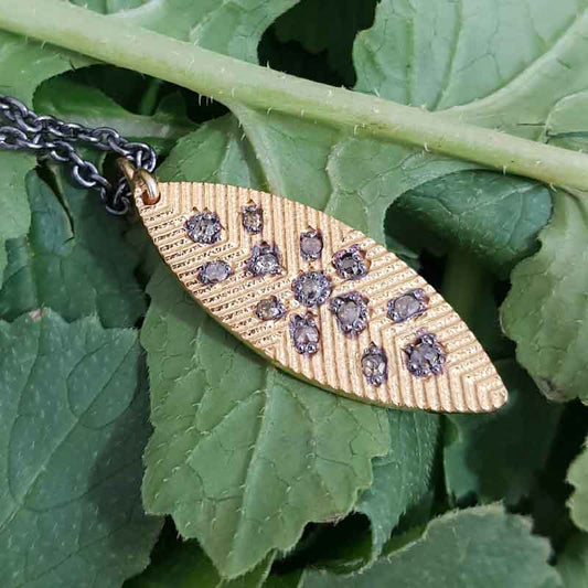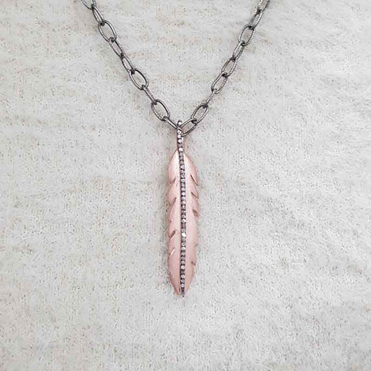 Natural Pave Diamond Matte Finish Leaf Pendant, black, Rose Gold Leaf Pendant, Wedding Gift