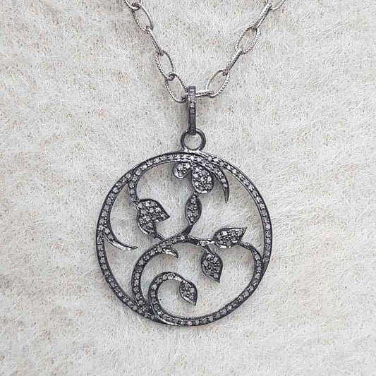Natural Pave Diamond Leaf Style Round Designer Pendant, Designer Leaf Round Pendant