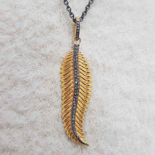 Pave Diamond Fancy Handmade Designer Long Leaf Pendant, Leaf Feather Pendant, Wedding Gift, Occasion Special