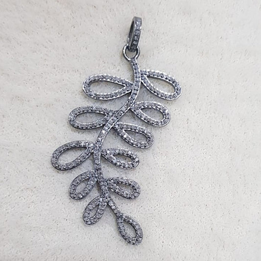 Fancy Attractive Designer Pave Diamond Leaf Pendant, leaf Stylish Pendant, Silver Jewelry